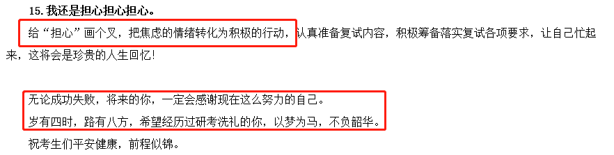 就像對外經(jīng)濟(jì)貿(mào)易大學(xué)《解答》中的結(jié)尾所講:“無論成功失敗,將來的你,一定會感謝現(xiàn)在這么努力的你。歲有四時,路有八方,希望經(jīng)歷過考研洗禮的你,以夢為馬,不負(fù)韶華!”你們終將身披鎧甲、凱旋而歸!
