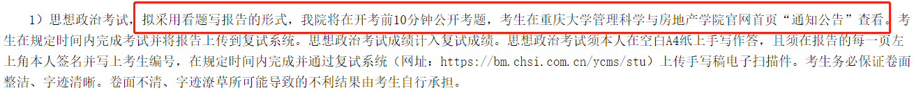 擬采用開題報(bào)考的形式,我院將于開考前10分鐘公開考題,考生可在管理科學(xué)與房地產(chǎn)學(xué)院的“通知公告”中可以查看。