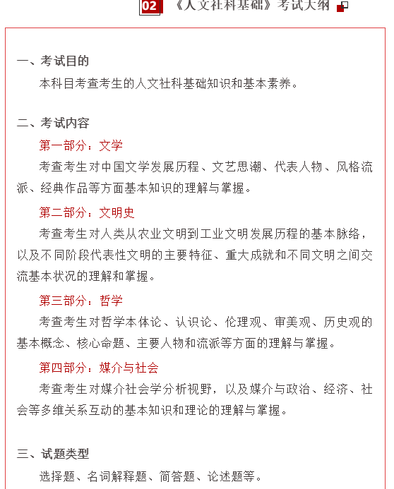 那么人文社科基礎又是什么呢?我們再看下中傳官方給出人文社科基礎考試內容: