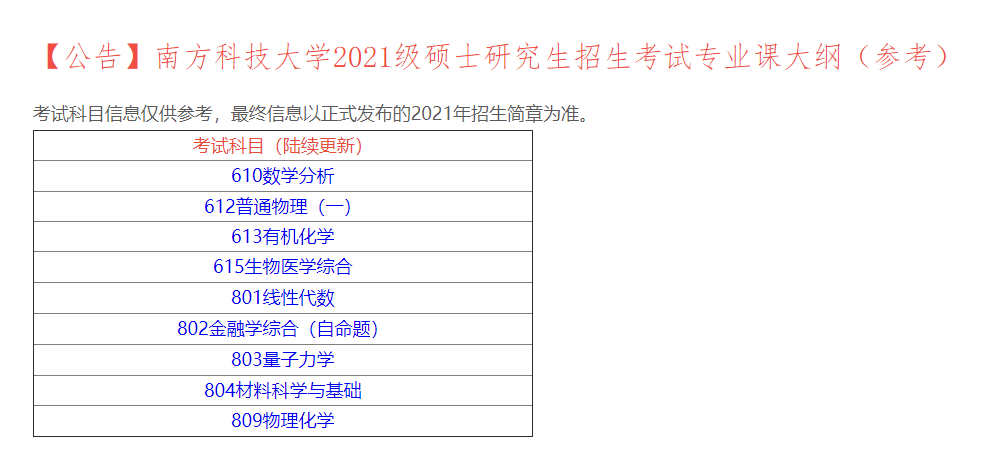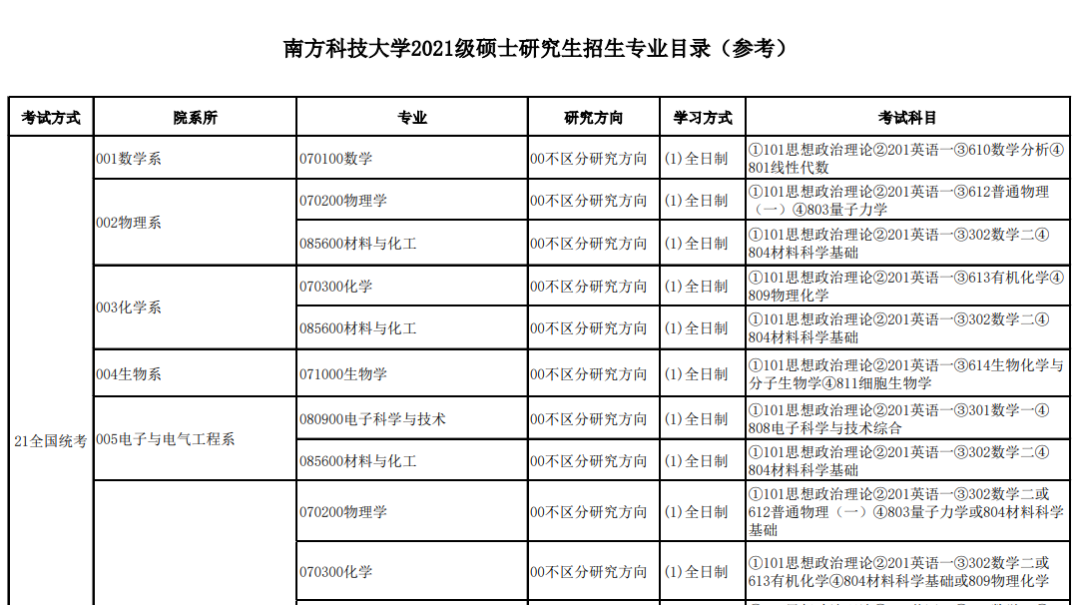 南方科技大學物理科學與技術學院公布2021年招生專業目錄。