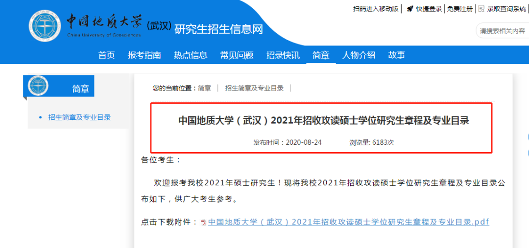 中國地質大學(武漢)公布2021年研究生章程及專業目錄。