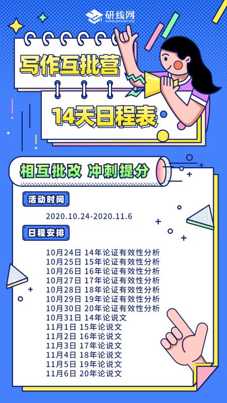 以上就是關于“14天寫作互批營如期而至,寫作沖刺50+就靠它!”所有內容,希望同學們的寫作水平進一步提高,最后祝愿同學們順利上岸!