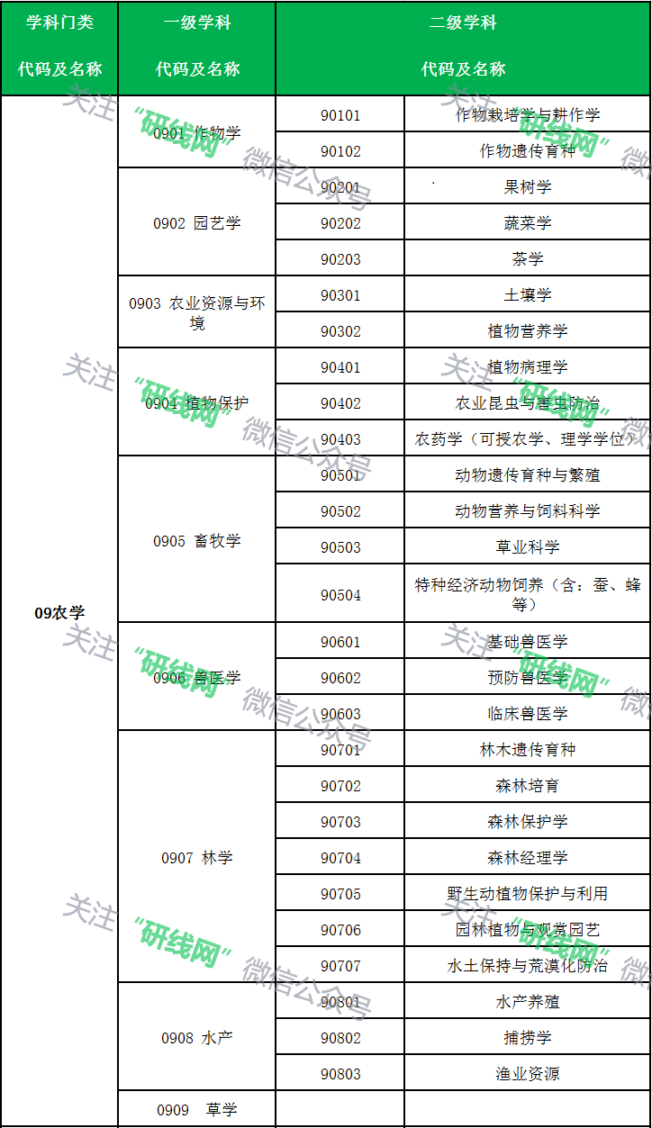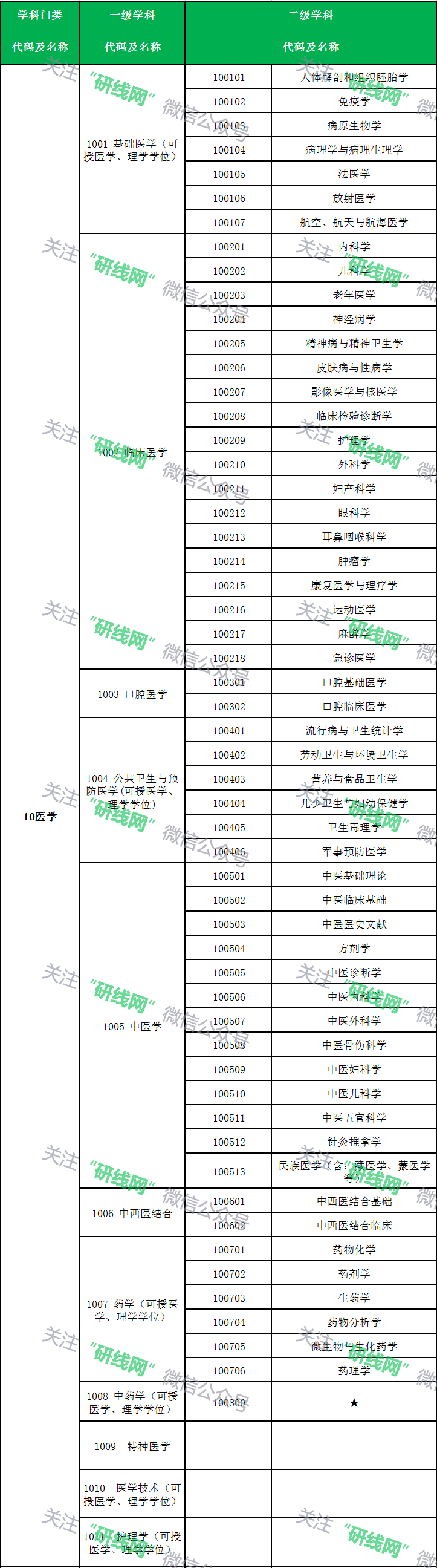 01哲學、02經濟學、03法學、04教育學、05文學、06歷史學、07理學、08工學、09農學、10醫學、11軍事學、12管理學、13藝術學;
