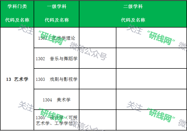 2011年3月,國務院學位委員會和教育部頒布修訂的《學位授予和人才培養學科目錄(2011年)》,規定我國分為哲學、經濟學、法學、教育學、文學、歷史學、理學、工學、農學、醫學、軍事學、管理學、藝術13個學科門類。