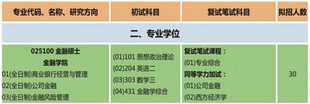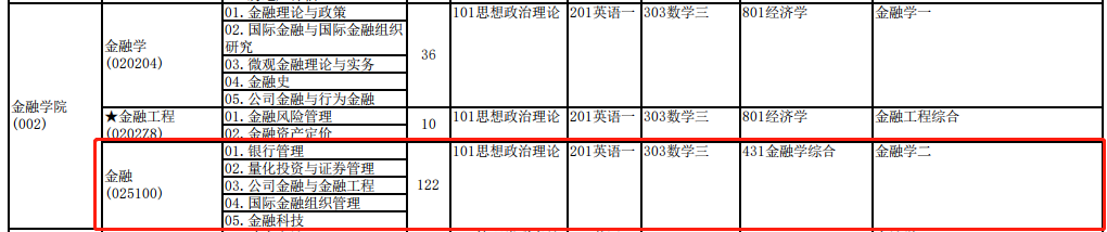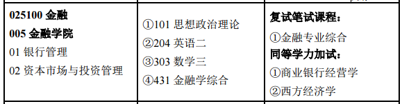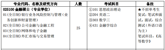 3)考試科目:(1)101思想政治理論;(2)204英語二;(3)303數學三;(4)431金融學綜合。