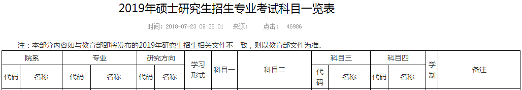 圖片來源:2019年碩士研究生招生專業考試科目一覽表