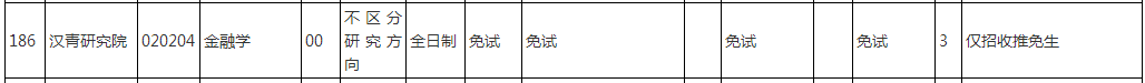 財政金融學院、漢青研究院(僅招收推免生)、國際學院三個學院招生,具體招生人數未公布。