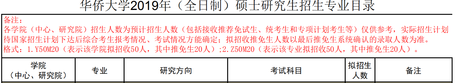 圖片來源:華僑大學2019年全日制碩士研究生招生專業目錄