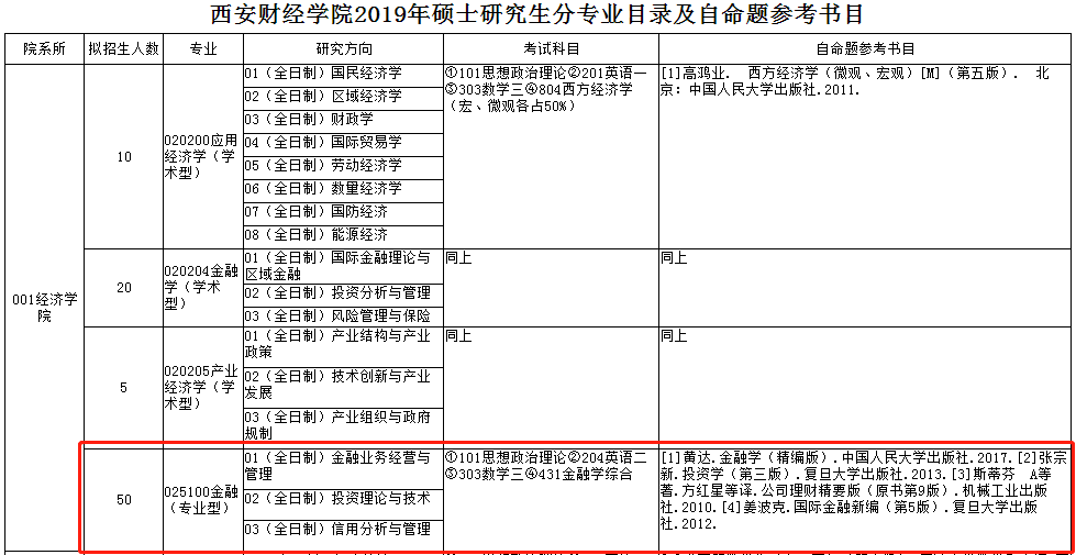 圖片來源:西安財經學院2019年碩士研究生分專業目錄及自命題參考書目