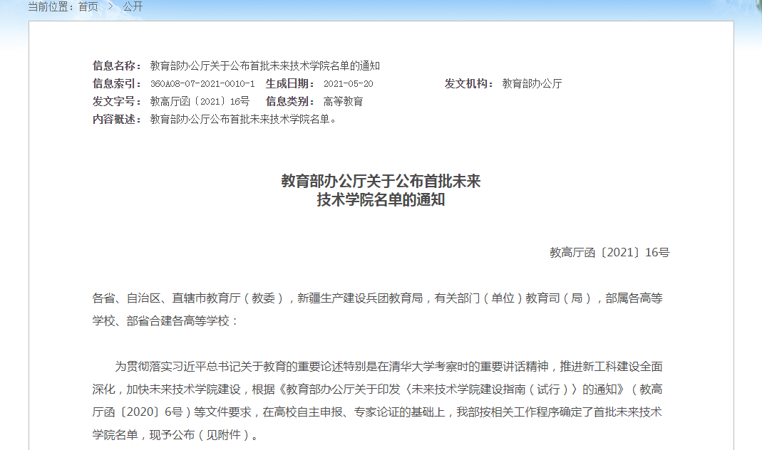 最新消息:教育公布首批未來(lái)技術(shù)學(xué)院名單