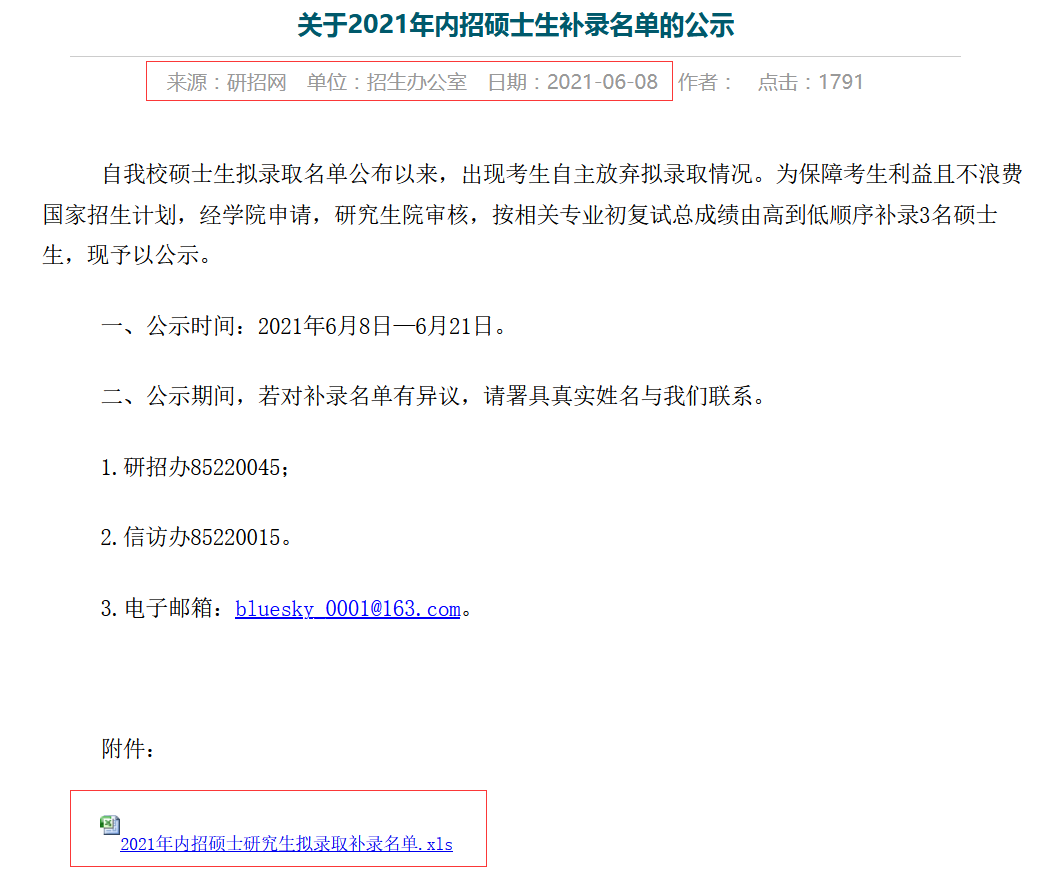 關(guān)于2021年內(nèi)招碩士生補(bǔ)錄名單的公示: