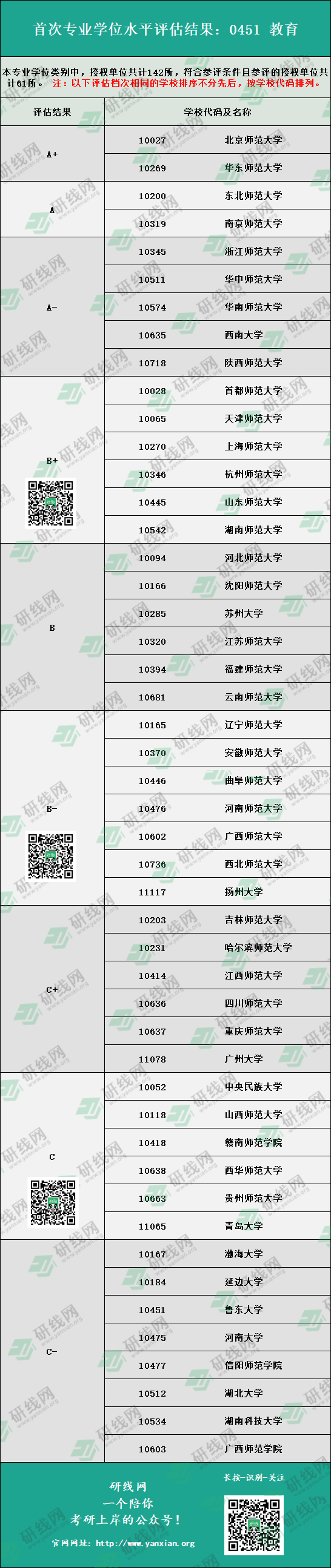 下面是全國首次專業學位水平評估結果中0451教育的院校排名,供大家擇校參考。