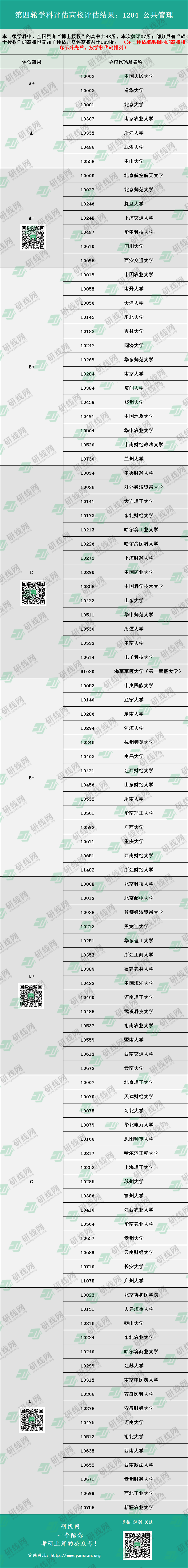 下面是全國第四輪學科評估結果 1204 公共管理 的院校排名,供大家擇校參考。(注:評估結果相同的高校排序不分先后,按學校代碼排列)