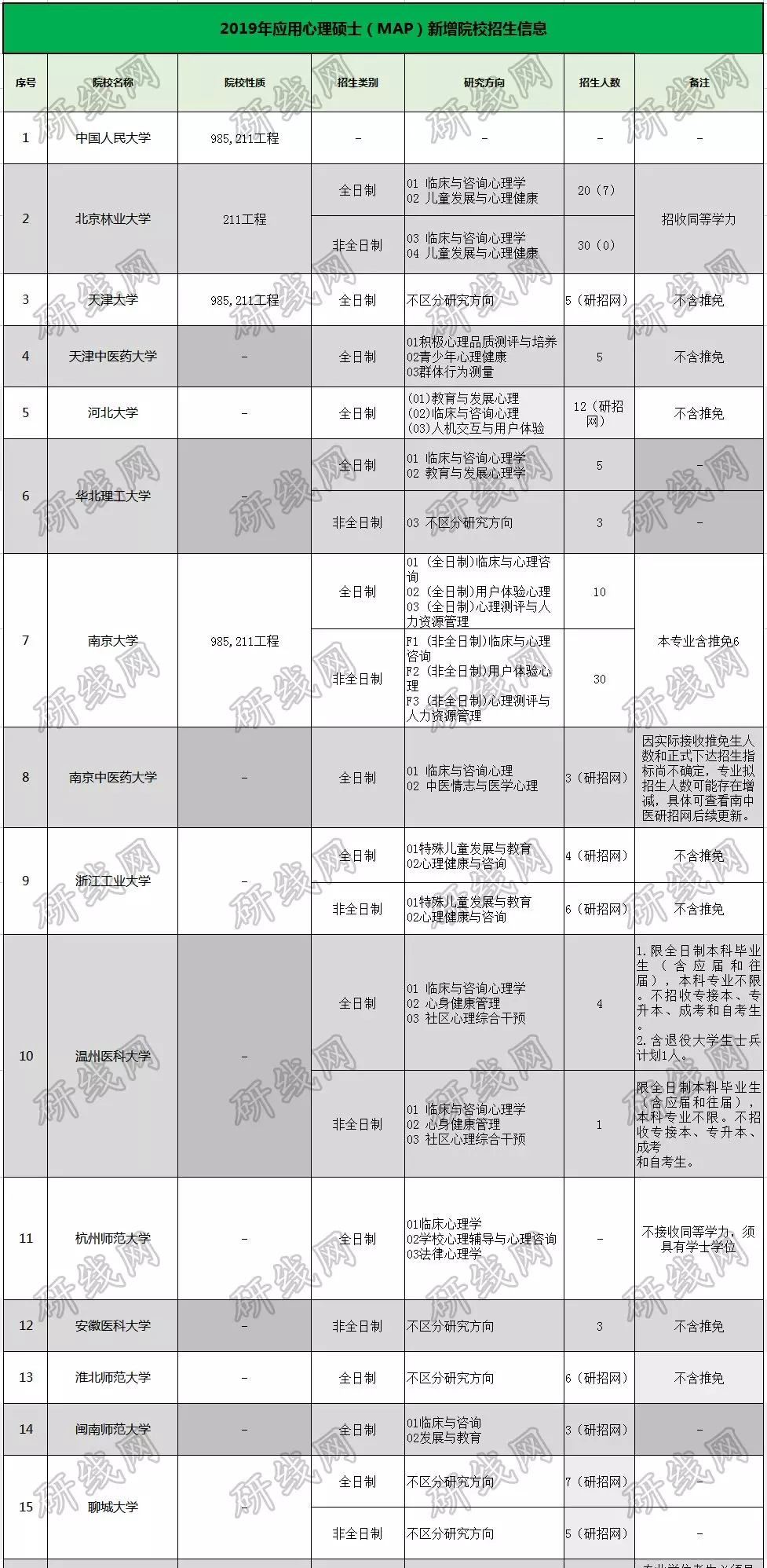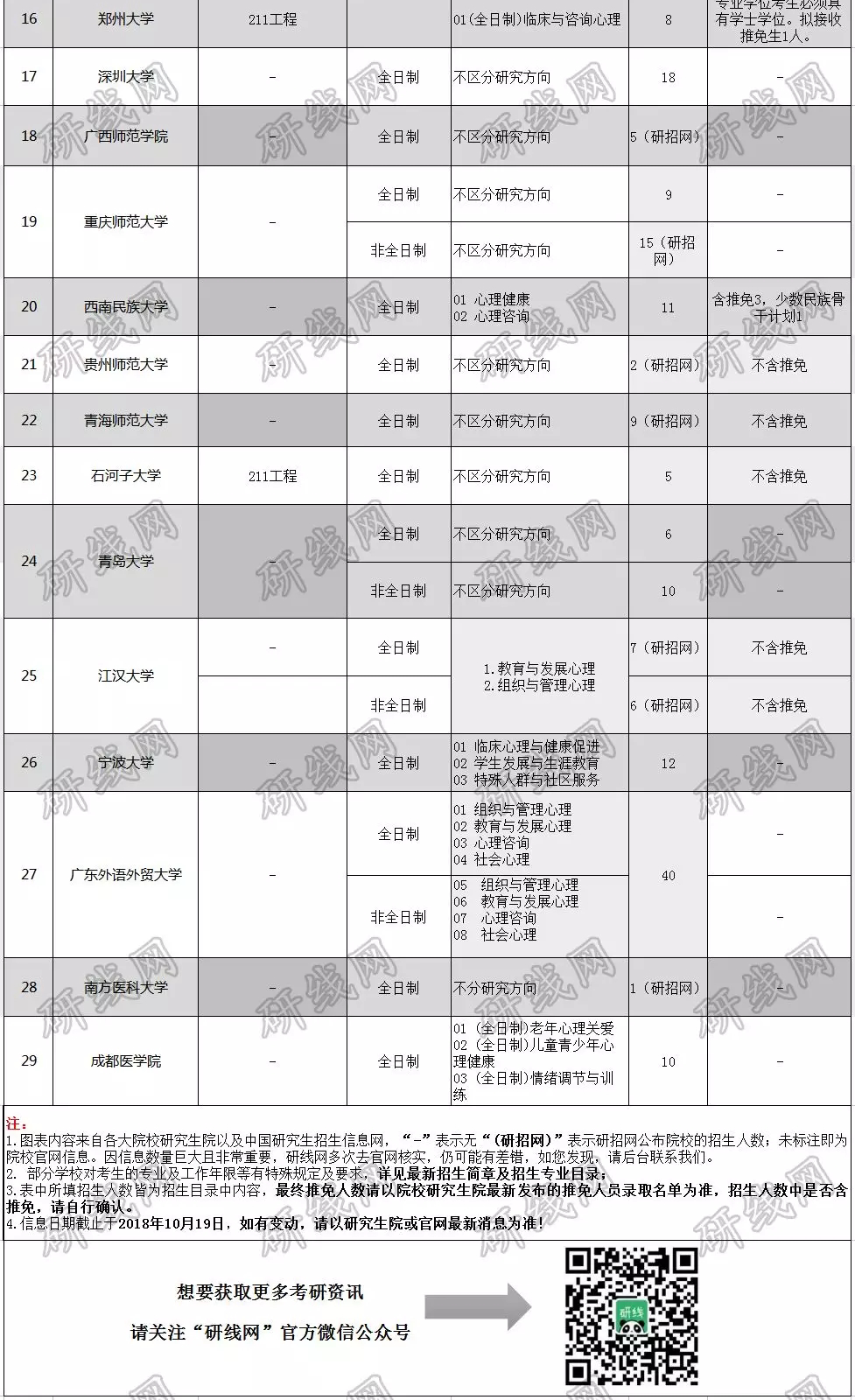 為了讓大家更好的了解應(yīng)用心理碩士,研線菌今天準(zhǔn)備了培養(yǎng)目標(biāo)、考試科目、考情分析、進(jìn)入復(fù)試的分?jǐn)?shù)線基本要求(國(guó)家線與34所自劃線院校分?jǐn)?shù)線),與2018年新增院校(附2019年招生信息),信息量很大,一直看到最后喲——