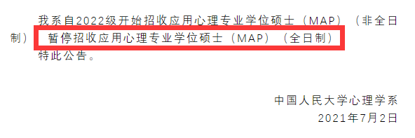 我系自2022級開始招收應用心理專業學位碩士(MAP)(非全日制),暫停招收應用心理專業學位碩士(MAP)(全日制)。