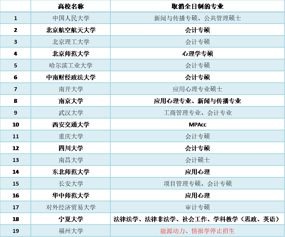 目前已有多所院校某些專業停招全日制或者新增非全日制招生,以下是取消全日制的專業匯總,可供參考:
