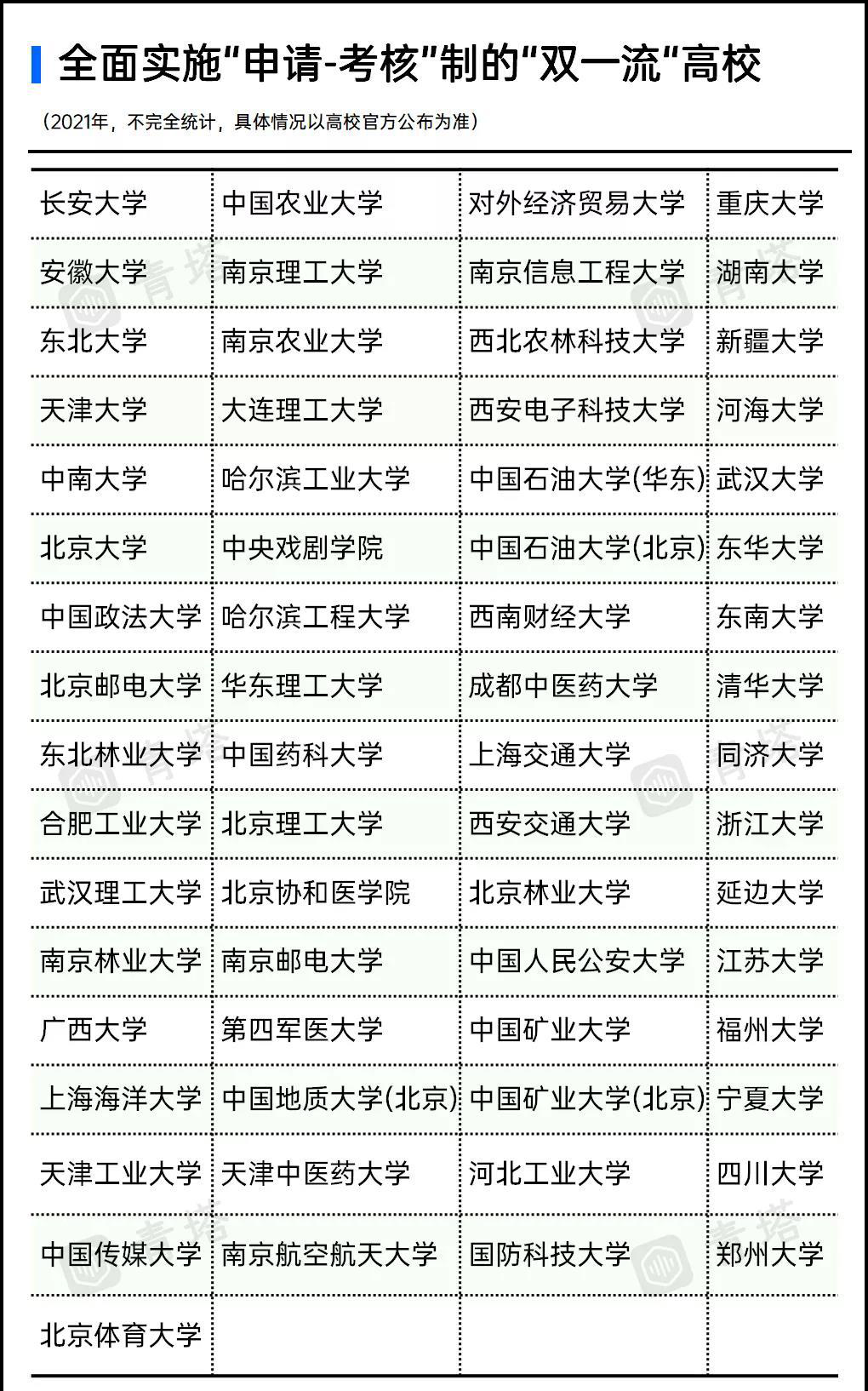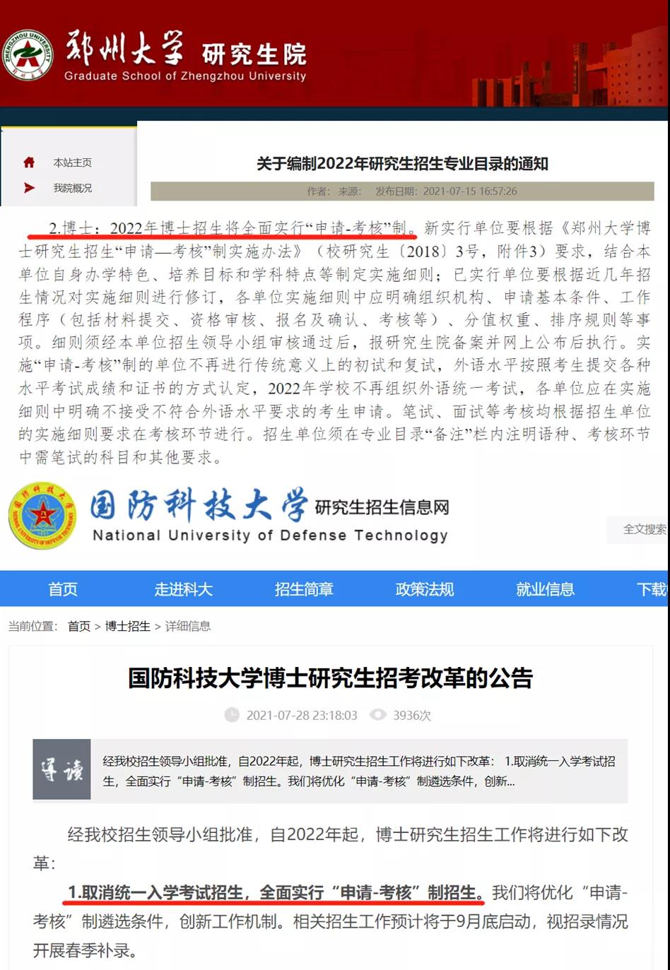 除了北京體育大學之外,鄭州大學、國防科技大學等“雙一流”高校在近期同樣宣布,從2022年開始,取消統一入學考試招生,全面實行“申請-考核”制招生。