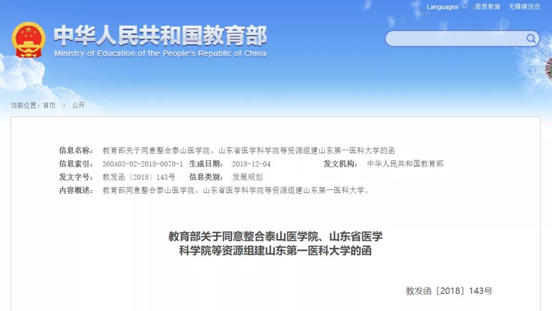 圖丨教育部正式批準“山東第一醫科大學”組建