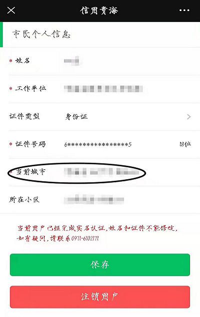 1.掃碼前,請務必先檢查個人信息中的“當前城市”(微信搜“信用青海”-信康碼-個人信息-當前城市,如下圖),確保該信息真實準確。