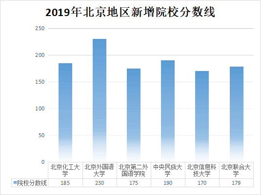 如圖2-1所示:2019年北京地區新增6所院校,院校分數線平均分約為188分。