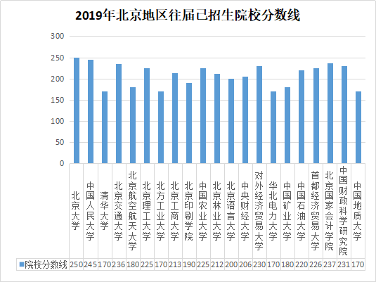 圖2-2.2019年北京地區往屆已招生院校分數線
