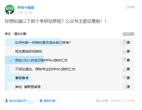 經(jīng)過(guò)激烈的群投票,征集大家意見(jiàn)選出了本次主題“如何判斷一所院校是否適合自己報(bào)考?”,你還想要什么知道任何考研資訊,都可以給研線小姐姐在群里留言哦!