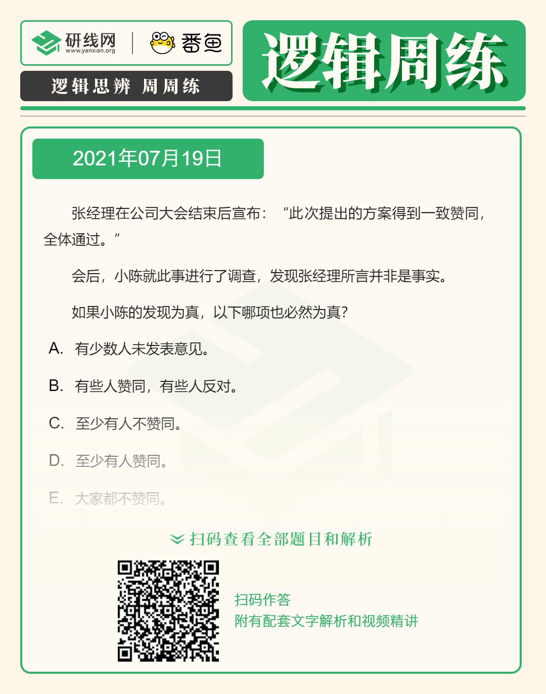 以上就是小編為大家整理“2022考研邏輯備考:7月19日邏輯專項練習及答案”的全部內容,希望各位考生堅持利用起來,想要獲取更多內容請持續關注本網站。