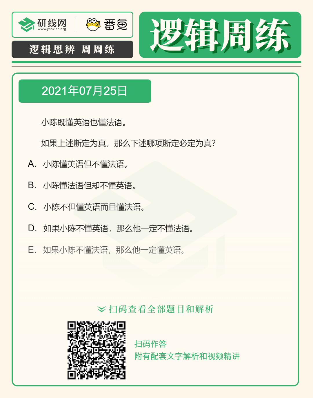 2022考研邏輯備考:7月25日邏輯專項練習及答案
