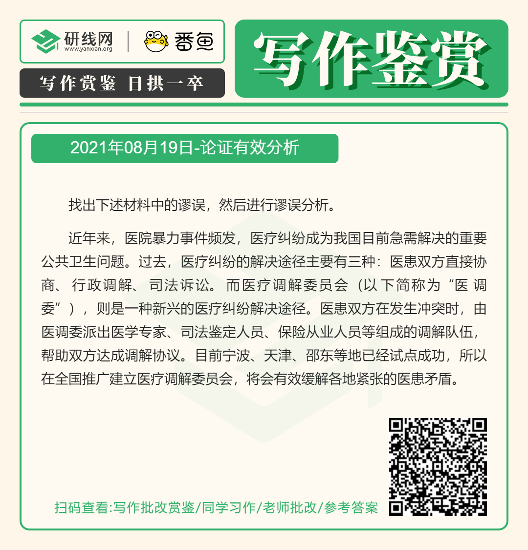 寫作鑒賞,日拱一卒,考研寫作鑒賞,攻克寫作難關!今天小編整理了“2022考研寫作備考:8月19日寫作鑒賞及答案”,希望能對廣大考生有所幫助!