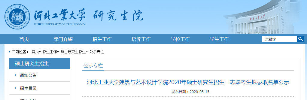 原標題:河北工業大學建筑與藝術設計學院2020年碩士研究生招生一志愿考生擬錄取名單公示