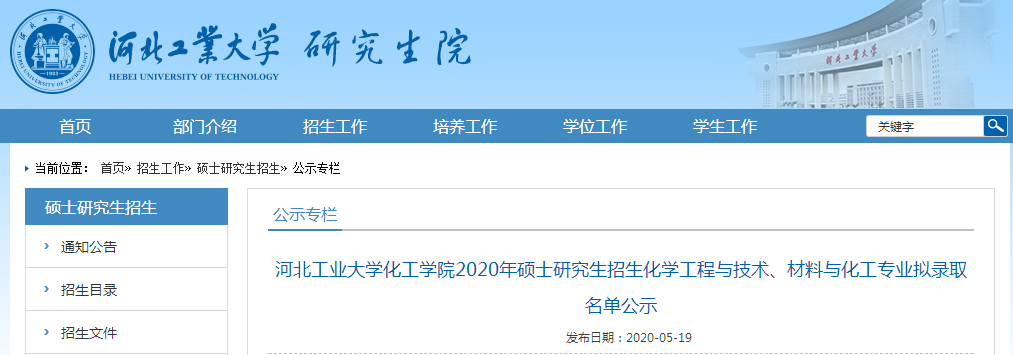 原標題:河北工業大學化工學院2020年碩士研究生招生化學工程與技術、材料與化工專業擬錄取名單公示