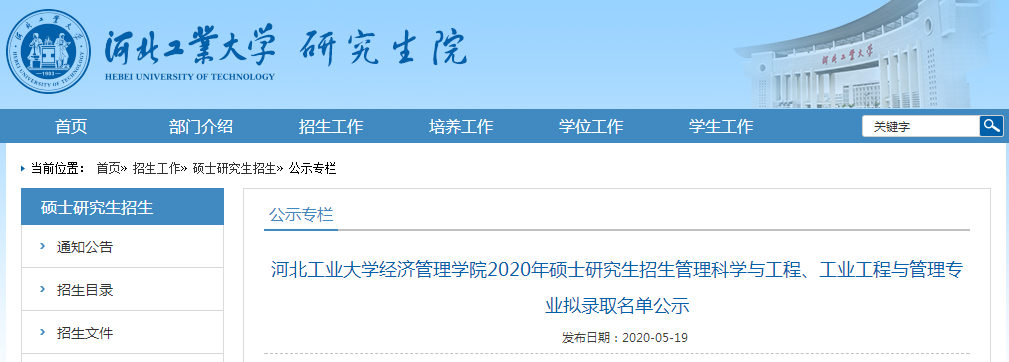 公示內容:河北工業大學經濟管理學院2020年碩士研究生招生