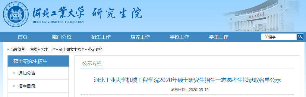 公示內(nèi)容:河北工業(yè)大學(xué)機(jī)械工程學(xué)院2020年碩士研究生招生一志愿考生擬錄取名單