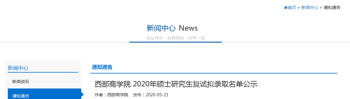 原標(biāo)題:西部商學(xué)院 2020年碩士研究生復(fù)試擬錄取名單公示