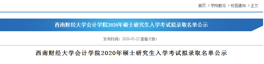 原標題:西南財經大學會計學院2020年碩士研究生入學考試擬錄取名單公示