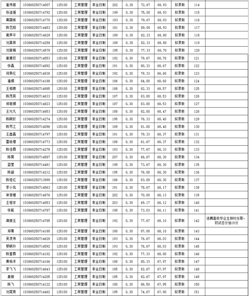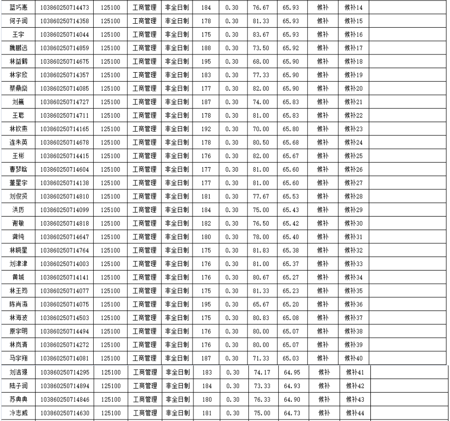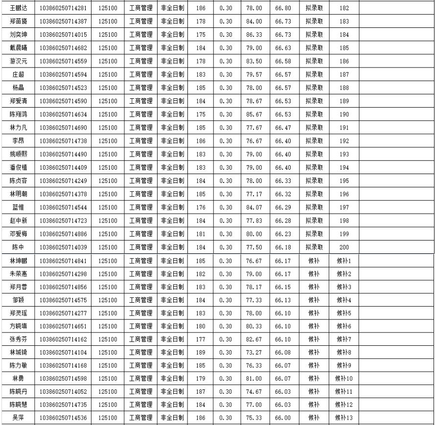 福州大學經濟與管理學院2020年非全日制碩士研究生復試情況公示(工商管理):