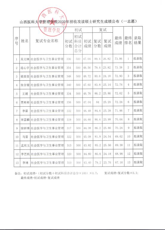 按照《山西醫科大學2020年招收攻讀碩士學位研究生復試工作方案》要求,我院于2020年5月18日、5月19日舉行招生復試工作,現對復試成績與擬錄取情況予以公示。