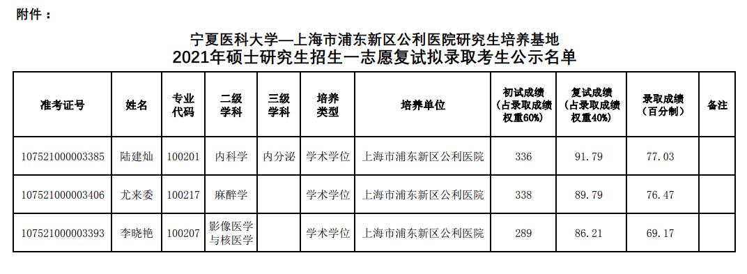 2021考研擬錄取名單:寧夏醫(yī)科大學(xué)上海市浦東新區(qū)公利醫(yī)院2021年碩招一志愿考生擬錄取名單公示”的相關(guān)內(nèi)容,希望能對大家有所幫助。
