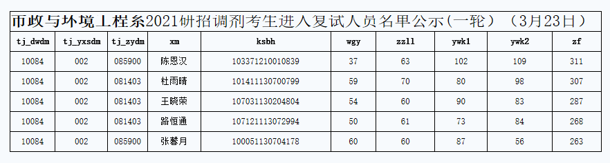 2021考研復試名單:河北建筑工程學院市政與環(huán)境工程系2021年碩士研究生進入復試名單