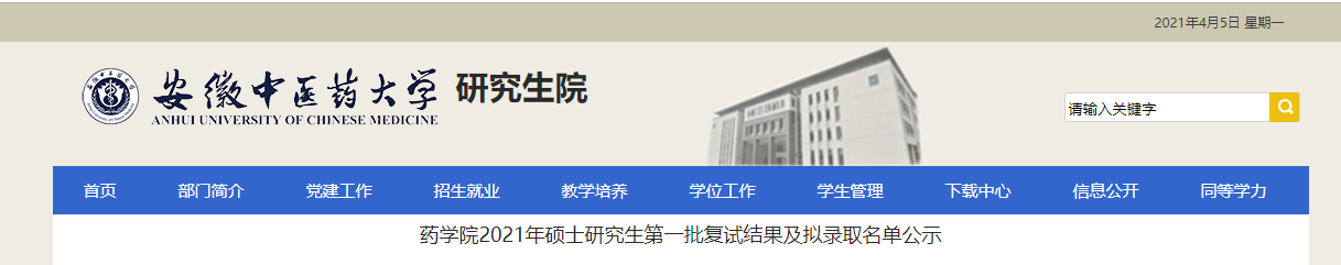 附件:安徽中醫藥大學中西醫結合學院2021年碩士研究生第一批復試結果及擬錄取名單公示