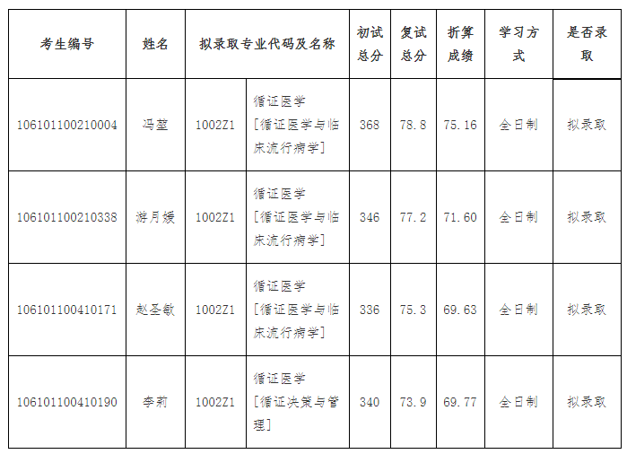 原文標題:四川大學循證醫學教育部網上合作研究中心2021年碩士研究生擬錄取名單公示