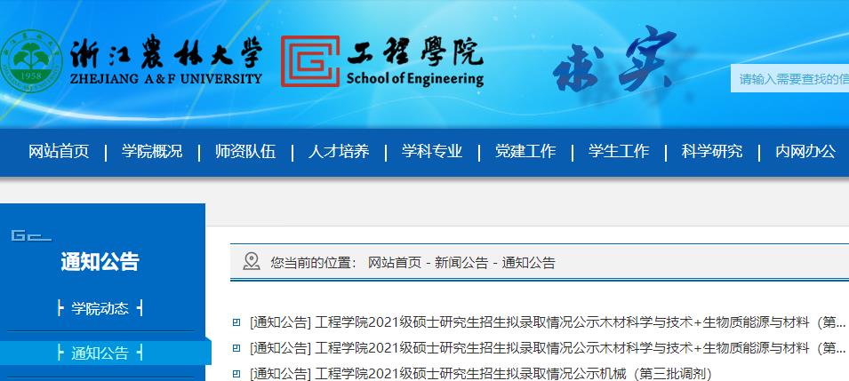 2021考研擬錄取名單:浙江農林大學工程學院2021年碩士研究生擬錄取結果公示