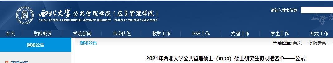 2021考研擬錄取名單:2021年西北大學(xué)公共管理碩士(MPA)碩士研究生擬錄取名單公示