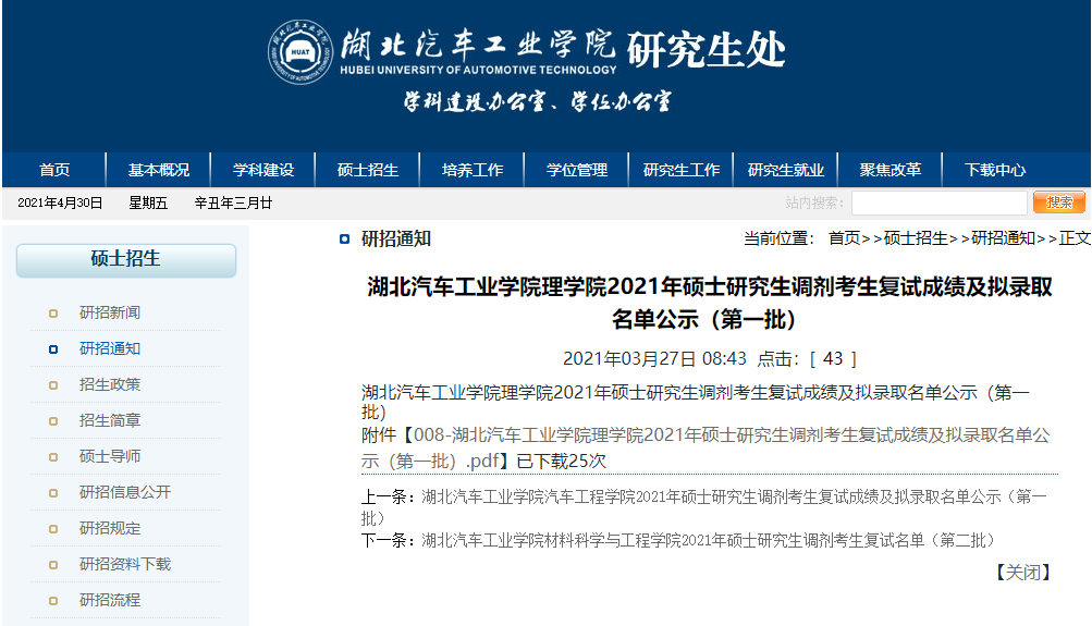 以上就是“2021考研擬錄取名單:湖北汽車工業(yè)學(xué)院2021年碩士研究生擬錄取名單匯總”的全部內(nèi)容,更多錄取名單相關(guān)內(nèi)容點(diǎn)擊2021考研擬錄取名單:全國各大院校2021年碩士研究生擬錄取名單匯總!查看詳情!