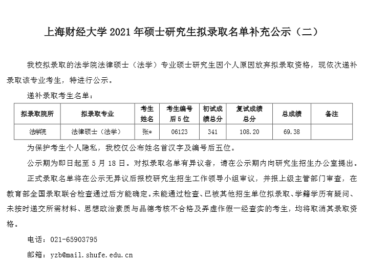 以上就是“2021考研擬錄取名單:上海財經大學2021年碩士研究生擬錄取名單公示匯總”的全部內容,更多錄取名單相關內容點擊2021考研擬錄取名單:全國各大院校2021年碩士研究生擬錄取名單匯總!查看詳情!