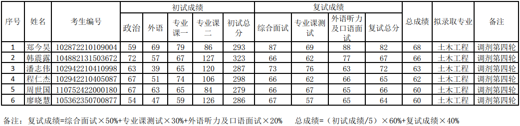 2022年土木工程碩士研究生調(diào)劑復(fù)試擬錄取名單(第六輪)