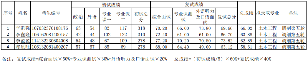 2022年土木工程碩士研究生調(diào)劑復(fù)試擬錄取名單(第四輪)