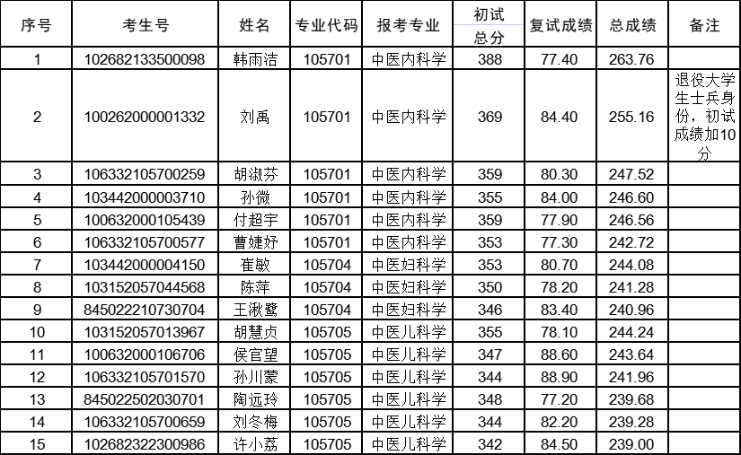 以上就是“2022考研擬錄取名單:長春中醫藥大學2022年碩士研究生招生考試中醫學院(吉林省中醫藥科學院第一臨床醫院)調劑考生擬錄取公示”的全部內容,更多錄取名單相關內容請持續關注本網站。