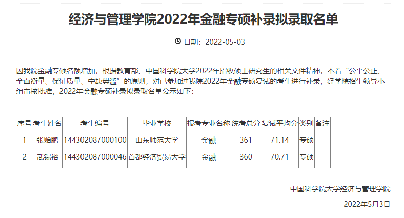 經(jīng)濟(jì)與管理學(xué)院2022年學(xué)術(shù)型碩士研究生補(bǔ)錄擬錄取名單