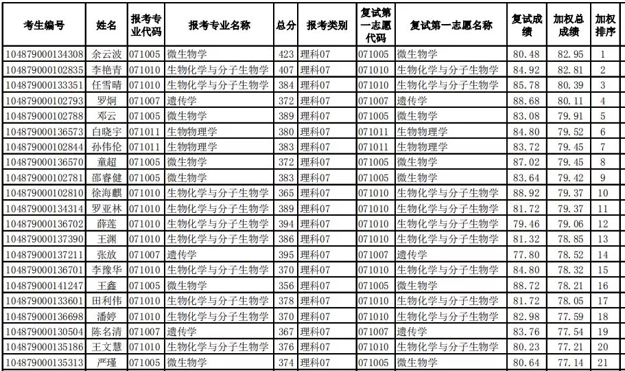 2019華中科技大學生科院各專業(yè)擬錄取名單
